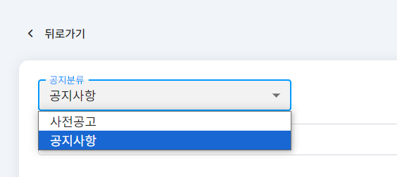 <figure><img src="https://1904511014-files.gitbook.io/~/files/v0/b/gitbook-x-prod.appspot.com/o/spaces%2FEFYHP7abguMF4iUwUOnc%2Fuploads%2FPRsDJ8198SeYuHmwi8wA%2Fimage.png?alt=media&#x26;token=b83f6470-25a6-4e1e-9187-12443d2442da" alt=""><figcaption><p>공지사항 글쓰기</p></figcaption></figure>